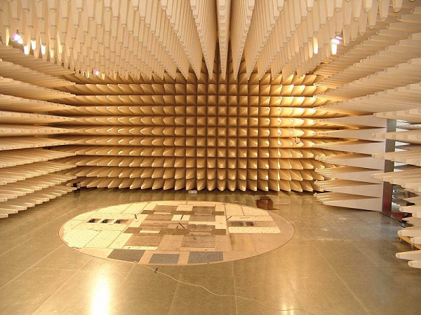 电波暗室是主要用于模拟开阔场,同时用于辐射无线电骚扰(EMI)和辐射敏感度(EMS)测量的密闭屏蔽室。电波暗室的尺寸和射频吸波材料的选用主要由受试设备(EUT)的外行尺和测试要求确定,分3m法暗室、5m法暗室、10m法暗室。在屏蔽室的天花板和四面墙贴上吸波材料,地面的吸波材料采用活动式铺设,即构成EMC实验室。该EMC暗室(实验室)为十米法半电波暗室,在30MHz至18GHz的频率范围内,在3米测试距离拥有2米静区,10米测试距离拥有3米或更大静区,该暗室满足FCC、CE和VCCI对十米法暗室的认证、测试要求。