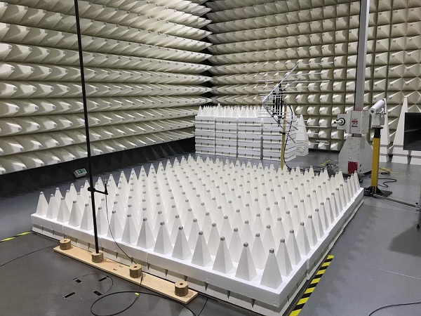 电波暗室是主要用于模拟开阔场,同时用于辐射无线电骚扰(EMI)和辐射敏感度(EMS)测量的密闭屏蔽室。电波暗室的尺寸和射频吸波材料的选用主要由受试设备(EUT)的外行尺寸和测试要求确定,分为3米法电波暗室、5米法电波暗室和10米法电波暗室。