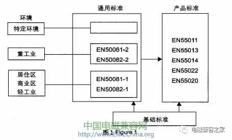 欧共体关于EMC的基本保护要求体现在其89/336/EEC指令中,所有进人欧洲市场的电子电气产品都必需符合该指令要求。该要求最终是通过贯彻欧洲标准(EN)来实现的,其标准体系如图1所示,由欧洲标准化委员会(CENELEC)制定实施。